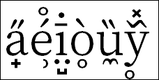 İ ı ſ ǵ ȷ ʻ ˆ ˚ ˜ ̅ ̇ ̧ ̨ ̶ 0︀(slashed-zero)