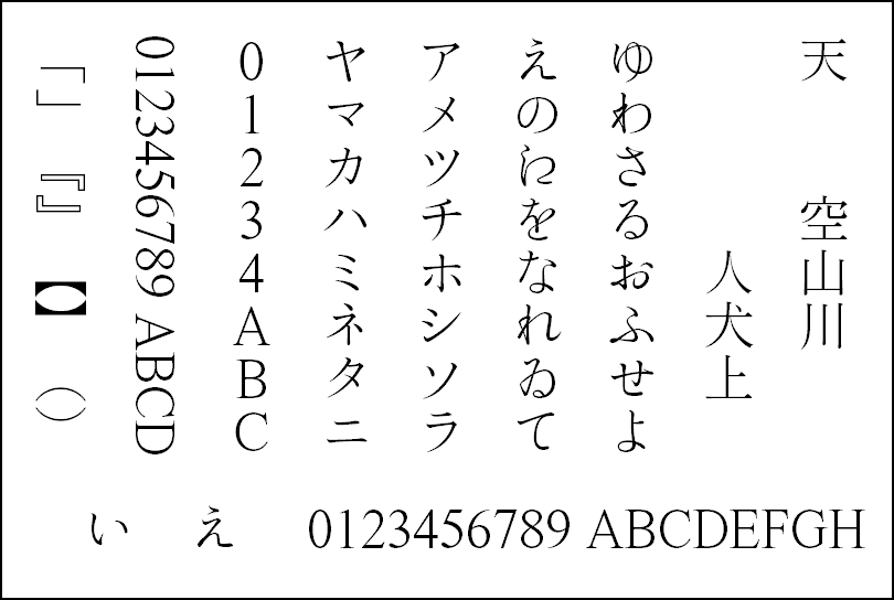 - CIDの並びを霧明朝・霧ゴシックと共通化したことに伴い、ラテン文字、IPA記号など50文字(100グリフ)を追加。