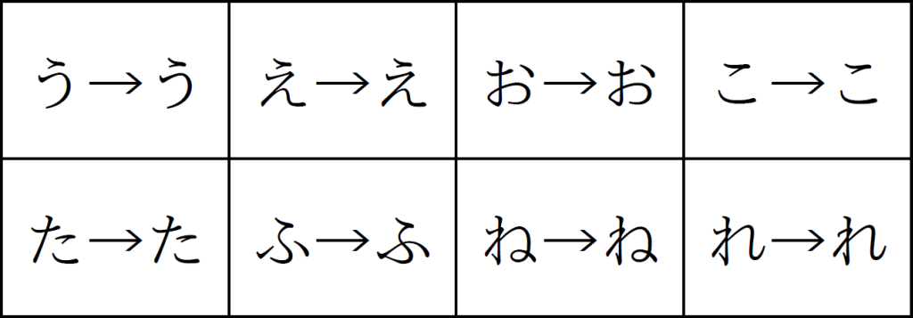 - は行の仮名についてはさらに半濁点付グリフも追加(36グリフ)。